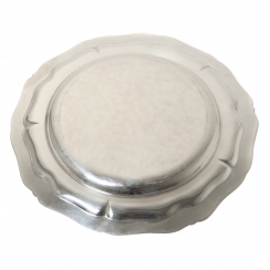 Maximum diameter: 26.5 cm, bottom diameter: 16.5 cm, brim height: 1.5 cm. Weight: 491 grams of sterling silver 925 fineness.