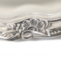 Максимальный диаметр: 26,5 см, диаметр дна: 16,5 см, высота полей: 1,5 см. Вес: 491 грамм серебра 925 пробы.