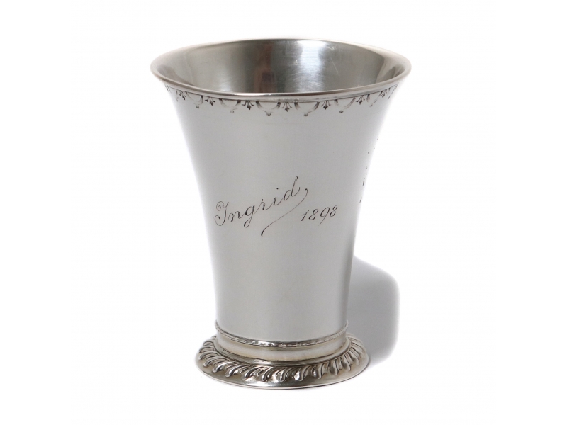 С гравировкой. ============================== Silver beaker in the form of a goblet.