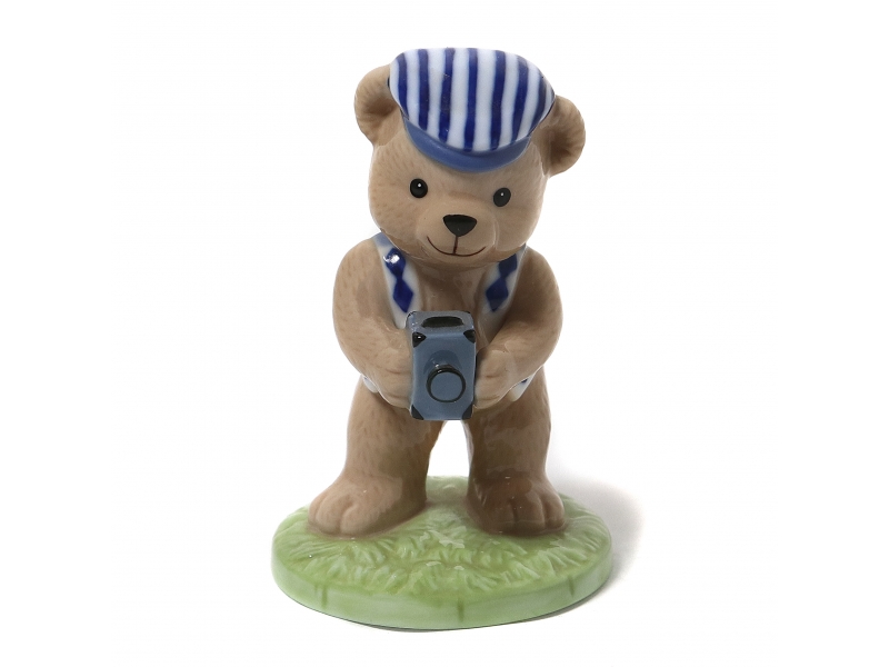 Годовая фарфоровая фигура (статуэтка) "Медведь Виктор c фотоаппаратом" из серии о семье плюшевых медведей Виктора и Виктории. В оригинальной коробке.