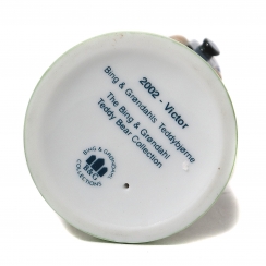 The series of figurines "Victor and Victoria’s family" was produced by Bing & Grondahl factory from 1997 to 2008 and was designed by the American artist Sheilah Beckett. She is well-known for her illustrations to more than 70 classic fairy tales. The series tells us a story of the most interesting life moments of charming teddy bears Victor and Victoria. It starts with the day of their encounter, shows family life, birth of their son Theo and it ends with the birth of their daughter Ursula. Two new figurines were produced every year since 1997 to 2004. Three new figurines were manufactured since 2005 to 2007. There were 4 new figurines produced in 2008 when the new character Ursula appeared.