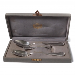 239246 - Детский набор серебряных столовых приборов, 3 предмета. Дания, 1927 год.Детский набор серебряных столовых приборов, 3 предмета. В оригинальной коробке.