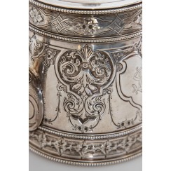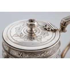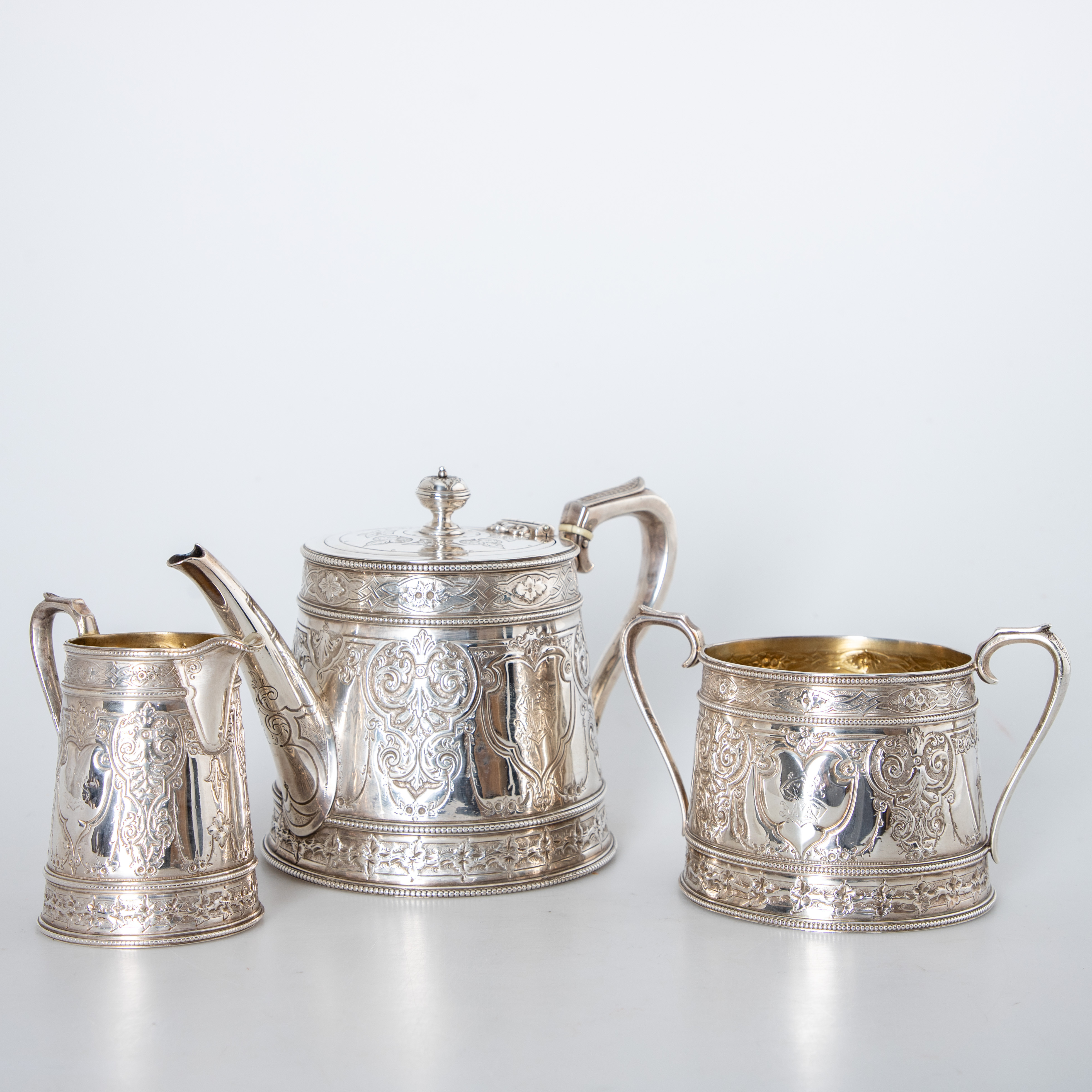 Чайный сервиз, 3 предмета, Англия, 1393 гр, 925 пр Высота чайника по хватку на крышке 16 см, диаметр основания 14,5 см Высота по край сахарницы 9,5 см, диаметр основания 11,8 см, диаметр верха 10 см Высота молочника по носик 11 см, диаметр основания 8 см