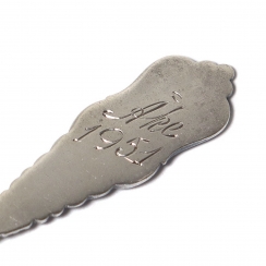 ![]() 209728 - Небольшие серебряные чайные ложки, 6 шт. НорвегияНебольшие серебряные чайные ложки, 6 шт.Дизайн "Tele". Норвегия, г. Крагерё, середина 20 века, мастерская Brodrene Mylius (годы работы: 1934-2002). Ввезены в Швецию. Государственное пробирное клеймо Швеции для ввезенных серебряных изделий. Длина: 11,5 см. Общий вес: 60 граммов серебра 830 пробы. ============================ Small silver teaspoons, 6 pcs. Pattern "Tele". Norway, Kragerø, mid 20th century, workshop Brodrene Mylius (worked since 1934 to 2002). Was imported to Sweden. Length: 11.5 cm. Total weight: 60 grams of silver 830 fineness. ![]() 255072 - Небольшие серебряные чайные ложки, 6 шт. НорвегияНебольшие серебряные чайные ложки, 6 шт.Дизайн "Tele". Норвегия, г. Крагерё, середина 20 века, мастерская Brodrene Mylius (годы работы: 1934-2002). Ввезены в Швецию. Государственное пробирное клеймо Швеции для ввезенных серебряных изделий. Длина: 11,5 см. Общий вес: 60 граммов серебра 830 пробы. ============================ Small silver teaspoons, 6 pcs. Pattern "Tele". Norway, Kragerø, mid 20th century, workshop Brodrene Mylius (worked since 1934 to 2002). Was imported to Sweden. Length: 11.5 cm. Total weight: 60 grams of silver 830 fineness. ![]() 271827 - Серебряная кофейная ложка. |