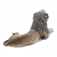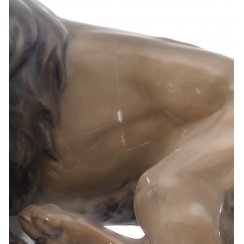 Фарфоровая фигура (статуэтка) "Зевающий лев". Ручная подглазурная роспись.