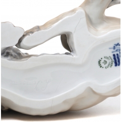 Дания, г. Копенгаген, Royal Copenhagen, 1958 год. Скульптор: Lauritz Jensen (годы жизни: 1859-1935). Номер модели: 1268, производится с 1911 года. Инициалы художника, расписавшего статуэтку: htx . Клеймо производителя.