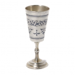 Высота: 8,5 см, диаметр верха: 3,5 см. Объём: 25 мл. Вес: 36 граммов серебра 875 пробы.