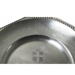 Серебряное блюдо или поднос с выгравированными гербами г. Бохуслена и г. Уддевалла.
