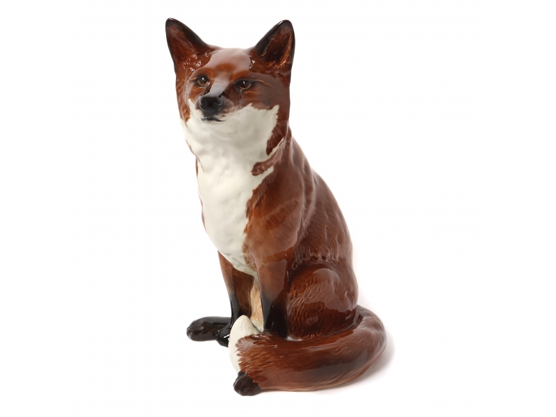 Фарфоровая фигура (статуэтка) "Сидящая лиса". Ручная подглазурная роспись.