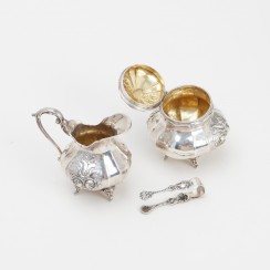 216693 - Серебряные сахарница и молочник. Ввезены в ШвециюСеребряные сахарница и молочник, декорированные розами.