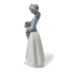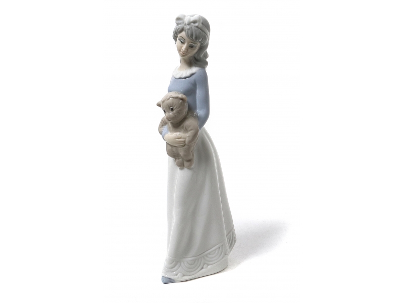 Фарфоровая фигура (статуэтка) "Девушка с плюшевым медвежонком". Ручная подглазурная роспись.