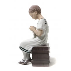 Фарфоровая фигура (статуэтка) "Грета. Девочка за вязанием". Ручная подглазурная роспись.
