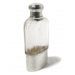 Сколы на горлышке. ======================= Pocket hip flask (whiskey bottle) with removable beaker. Glass, silver 800 fineness.