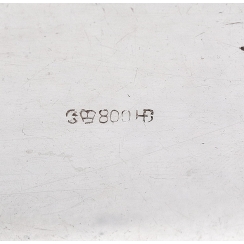 Height: 14.5 cm, length: 6.5 cm, width: 3.5 cm. Flask volume: 130 ml, cup volume: 60 ml. Weight of beaker and lid with cork: 83 grams of silver 800 fineness.