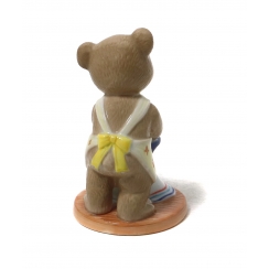Годовая фарфоровая фигура (статуэтка) "Медведица Виктория, купающая медвежонка Тэо" из серии о семье плюшевых медведей Виктора и Виктории. Ручная роспись. В оригинальной коробке.