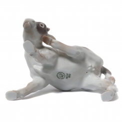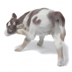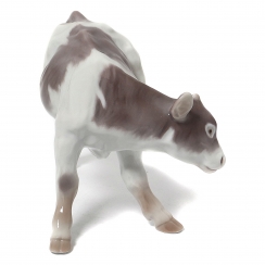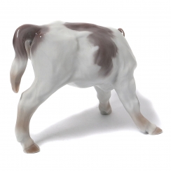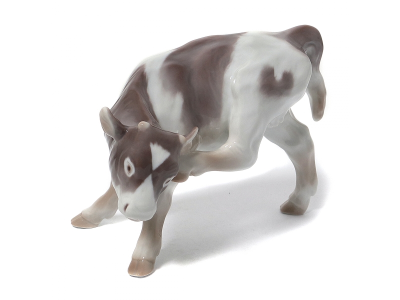 Фигуру продолжали производить также после объединения фабрик Royal Copenhagen и Bing & Grondahl (1985-1989) под брендом Royal Copenhagen, с новым номером модели: 432. ==================================== Porcelain figurine "Calf scratching ear". Hand-painted underglaze.