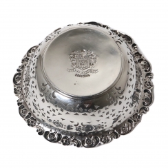 Трещинка и утрата фрагмента на краях. ========================= Silver open-work bowl with the Latin motto "Honor Deo" Jany 1903 (Honor to God), which is the motto of the Worshipful Company of Mercers (city of London).