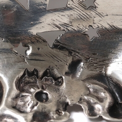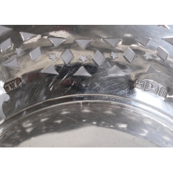 Высота: 4,5 см, диаметр верха: 14,5 см. Вес: 87 граммов серебра 925 пробы.