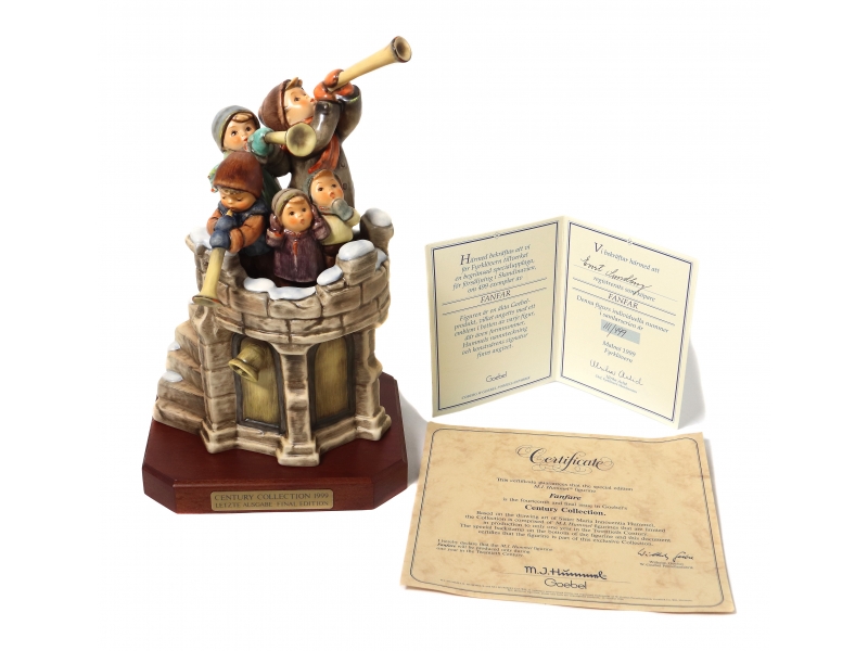 Без сколов, повреждений и без реставраций. Сертификат: Настоящим подтверждается, что для компании Fyrklövern мы изготовили ограниченный специальный выпуск для продажи в Скандинавии в количестве 499 экземпляров: FANFAR (ФАНФАРЫ). =========================== Porcelain figurine "Fanfare" (Tower Blower) belongs to the series of figures "Century Collection". Hand painted. Certificate.