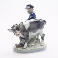 254442 - Фарфоровая фигура Паренек с теленком. Royal CopenhagenФарфоровая фигура (статуэтка) "Паренек с теленком". Ручная подглазурная роспись.