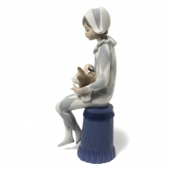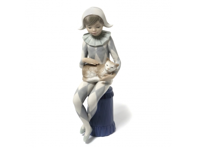 Фарфоровая фигура (статуэтка) "Арлекин с кошкой". Ручная подглазурная роспись.