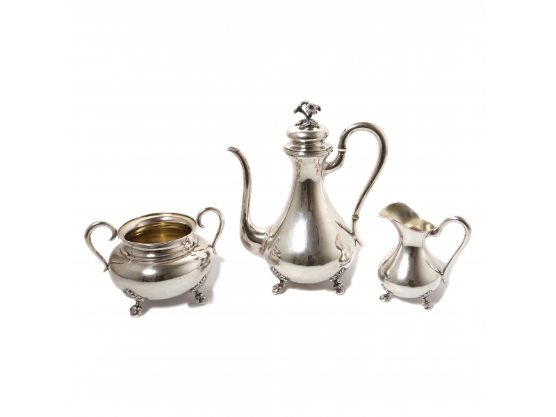 С гравировкой на дне. За дополнительную плату гравировка может быть удалена. =========================== Silver coffee set, 3 pcs.
