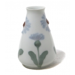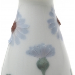Несколько мелких точек с угольными вкраплениями. Без сколов и реставраций. ================================= Unique porcelain vase. Modern, decorated with a relief ornament of daisies. Hand-painted underglaze.