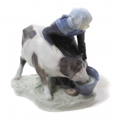В пару к этой фигуре существует фигура "Паренек с теленком" фабрики Royal Copenhagen #772. ============================== Porcelain figurine "Girl with calf". Hand-painted underglaze.