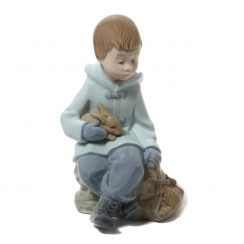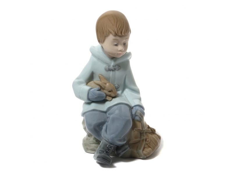 Без сколов, повреждений и без реставраций. ============================ Porcelain figurine "Boy resting on excursion" (Boy with rabbit). Hand-painted underglaz.