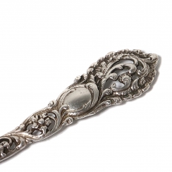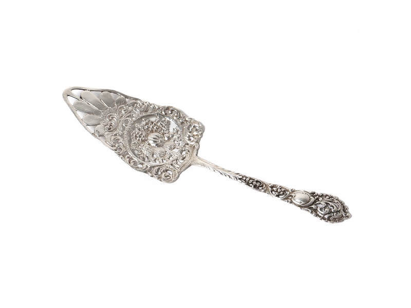 Серебряная сервировочная лопатка, декорирована фруктами.