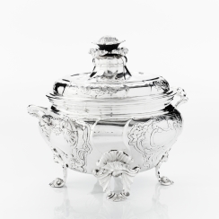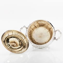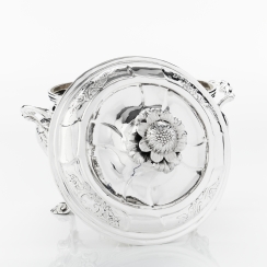высота по хватку на крышке 18 см, высота по край чаши 11,5 см, диаметр верха чаши 15 сммаксимальная длина, включая ручки 24,5 см