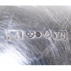 Height: 6.3 cm, diameter of the top: 11 cm. Weight: 164 grams of silver 830 fineness.