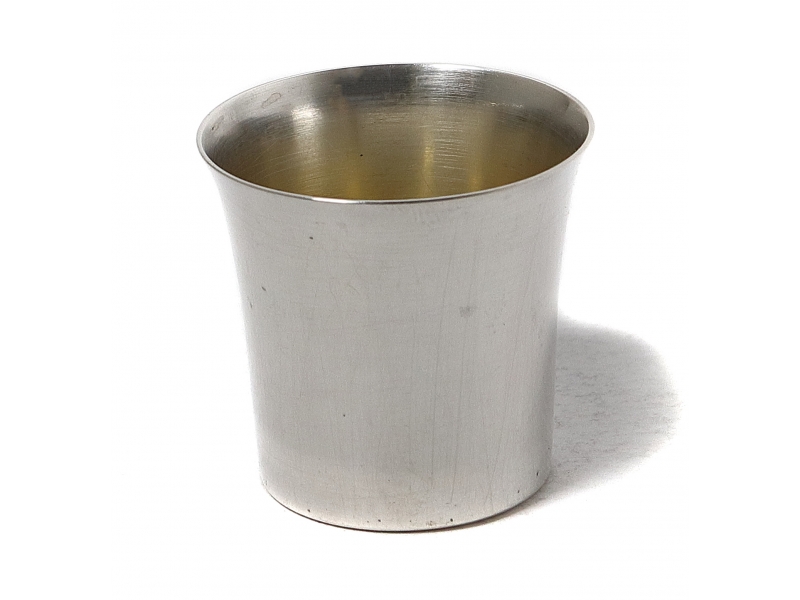 Высота: 4,5 см, диаметр верха: 4,7 см. Объём: 50 мл. Вес: 30 граммов серебра 830 пробы. =============================== Silver vodka cup (shot cup).
