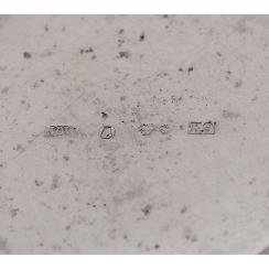 Height: 4.5 cm, diameter of the top: 4.7 cm. Volume: 50 ml. Weight: 30 grams of silver 830 fineness.