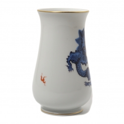 Без сколов, реставраций и повреждений. ========================== Porcelain vase, decorated with a drawing of a blue dragon spewing red-orange flames. Pattern "Ming dragon, blue". Hand-painted.
