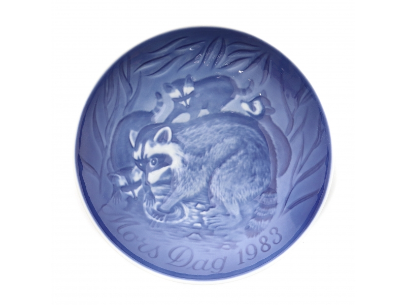 Блюдце первого сорта. Без сколов, повреждений и без реставраций. ================================ Wall porcelain saucer "Raccoon with Cubs" (Vaskebjern med unger) from a series of "Mother's Day".