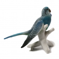 Фарфоровая фигура (статуэтка) "Голубой волнистый попугай на ветке". Ручная подглазурная роспись.