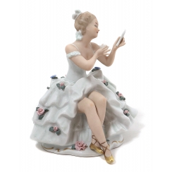 Фарфоровая фигура (статуэтка) "Балерина с зеркалом". Ручная роспись.