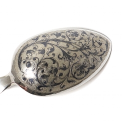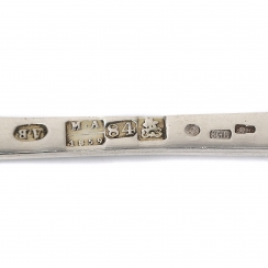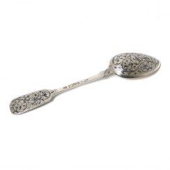 Length: 21.2 cm. Weight: 68 grams of silver 84 fineness in zolotniki ( = 875 metrical fineness).