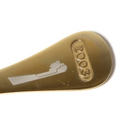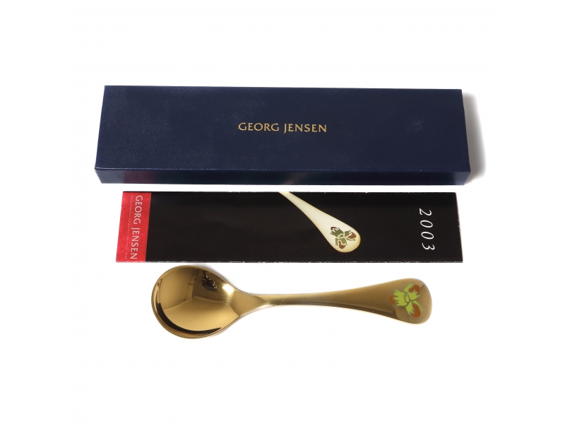Georg Jensen, Дания: Коллекционная десертная ложка "Фундук" 2003 года. Серебро, позолота, эмаль. В оригинальной коробке.