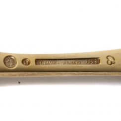 Надпись "GEORG JENSEN" в овале, обрамленная точками – клеймо дизайнерского дома "Georg Jensen", используется с 1945 года по настоящее время. Разработанный дизайн Annelise Bjorner. Клеймо "Sterling Denmark" удостоверяет, что изделие выполнено в Дании из серебра 925 пробы.