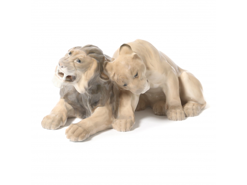 Статуэтка первого сорта. Без сколов, повреждений и без реставраций. ============================== Porcelain figurine "Lion with lioness". Hand-painted underglaze.