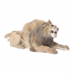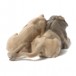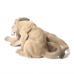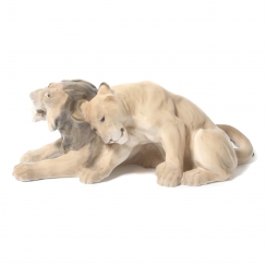 Фарфоровая фигура (статуэтка) "Лев с львицей". Ручная подглазурная роспись.