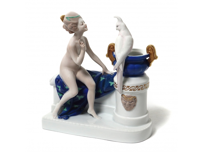 Фарфоровая фигура (статуэтка) "Венера с какаду". Ручная подглазурная роспись.