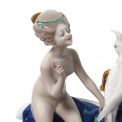 Без сколов, повреждений и без реставраций. ================================ Porcelain figurine "Venus with a cockatoo". Hand-painted underglaze.