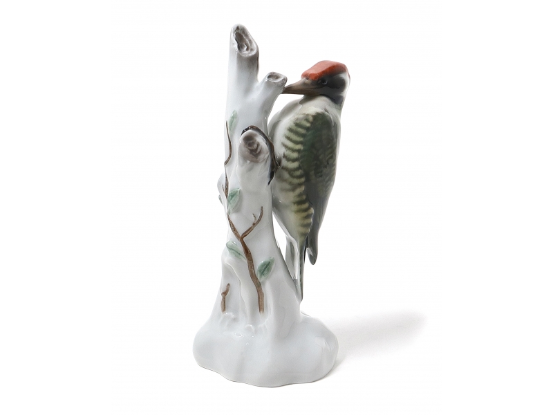 Фарфоровая фигура (статуэтка) "Дятел на дереве". Ручная подглазурная роспись.