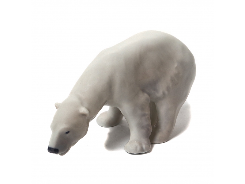 Фарфоровая фигура (статуэтка) "Белый полярный медведь". Ручная подглазурная роспись.