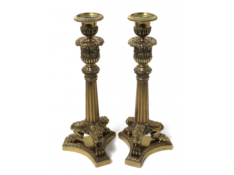 Пара бронзовых подсвечников в стиле ампир.