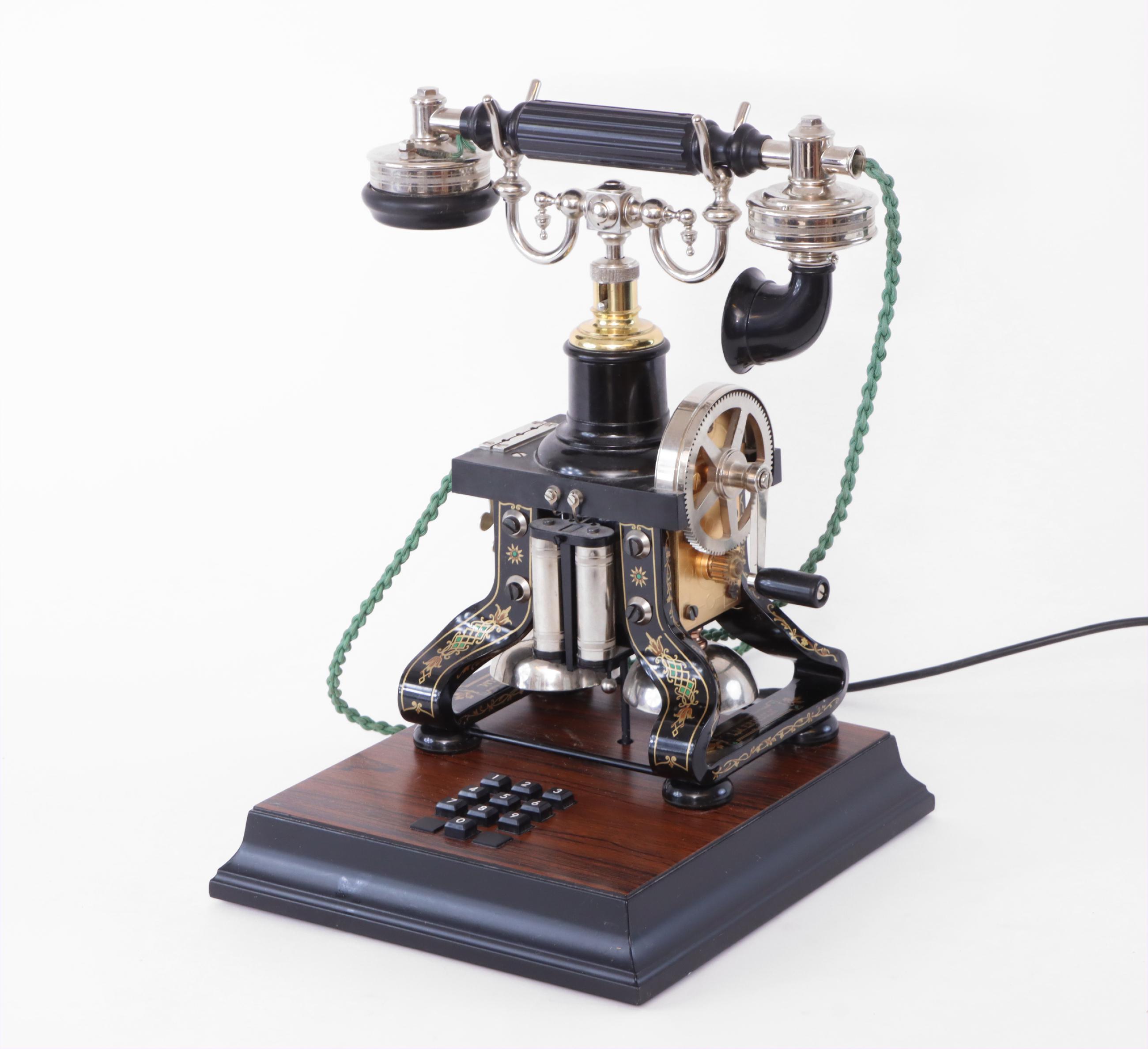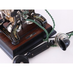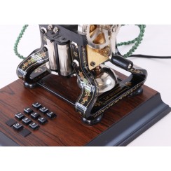 Юбилейная модель телефона Ericsson. Швеция, г. Стокгольм. В 1881 году компания Ericsson впервые выпустила настольный вариант телефона. Такое новшество сделало эту модель телефона невероятно популярной по всему миру (до 1930 года компания продала более 2 миллионов подобных аппаратов). Стоит отметить, что в народе эту модель прозвали «Таксой», впоследствии компания Ericsson сама начала именовать этот телефон именно так. Также он был известен как Skeleton Type, Skelettapparat, Taxen, Эйфелева башня. В 1981 году, к 100-летию выхода на рынок этой модели, компания Ericsson выпустила ограниченную партию реплик «Таксы» в количестве 1000 экземпляров, адаптированных под современную телефонную линию. Верхняя часть реплик выполнена из тех же материалов, что и первые экземпляры «Таксы», а подставка адаптирует телефон для работы в современных телефонных сетях. Максимальная высота: 35 см. Размеры основания: 25,5 х 25 см.