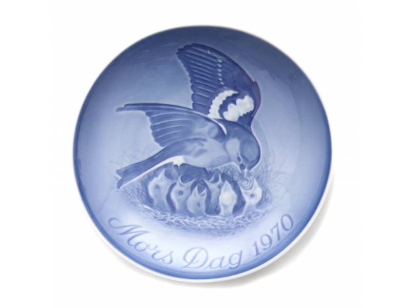 Блюдце первого сорта. Без сколов, повреждений и без реставраций. ================================ Wall porcelain saucer "Sparrow with Chicks" (Spurv med unger) from a series of "Mother's Day".